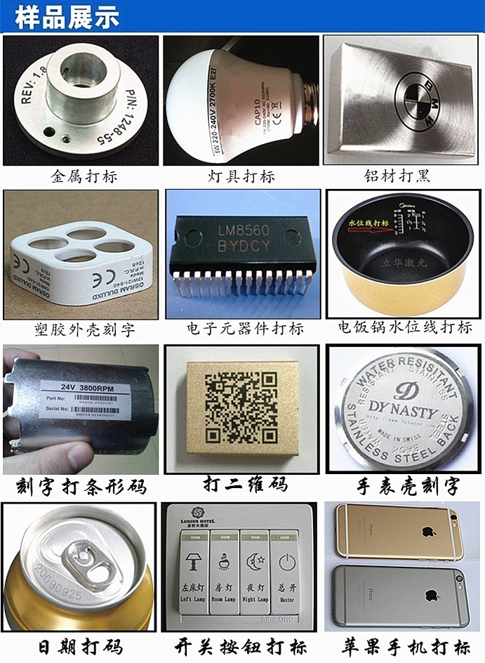 便攜式機箱,占地面積小,可手提帶走;優秀的光束質量,聚焦光斑直徑不到20um;電光轉換效率最高達到30%;激光打標機壽命長,免維護;加工速度快,加工速度是傳統激光打標機的5-10倍;